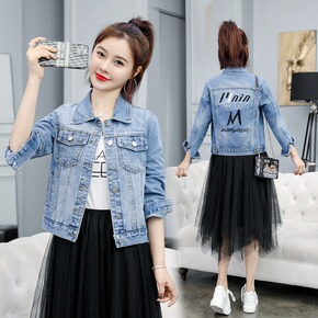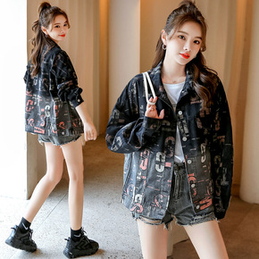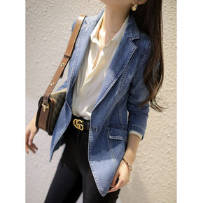 2021秋装新款宽松渐变色牛仔外套女 ins满印潮...