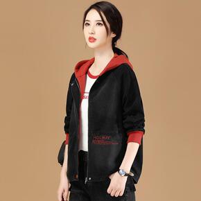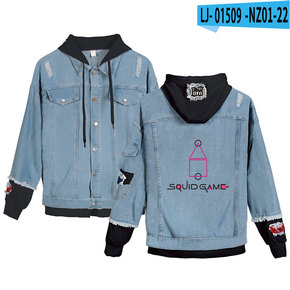 2021年春秋装新款韩版刺绣连帽拼接牛仔外套女短款...