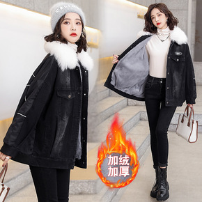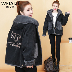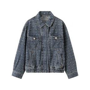 现货 秋装女新款磨毛提花珍珠扣口袋翻领夹克牛仔外套...