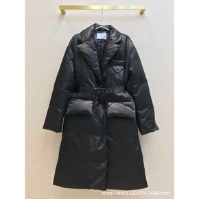 P家21秋冬新款倒三角标配腰带棉外套收腰显瘦西装领...