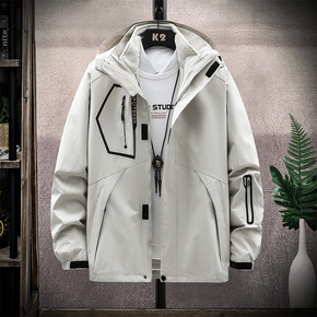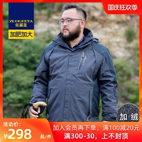 秋冬季加大码男户外外套加绒夹克加肥加大可脱卸内胆两...