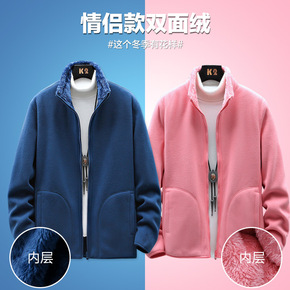 户外情侣摇粒绒休闲外套女加绒加厚开衫卫衣双面抓绒外...