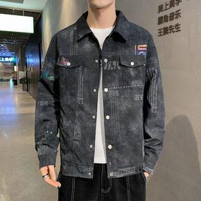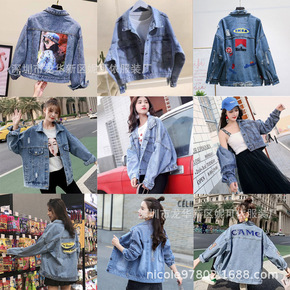 韩系字母满印涂鸦牛仔外套女2021春秋bf街头潮流...