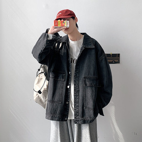 港风宽松休闲夹克2021春季新款男装外套 时尚经典...