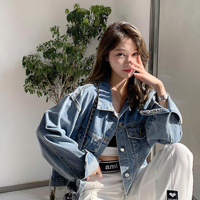 牛仔外套女2021韩国新款秋季短款夹克宽松百搭bf...