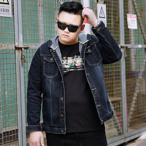 冬季大码男装加绒加厚牛仔外套加肥加大弹力保暖夹克肥...