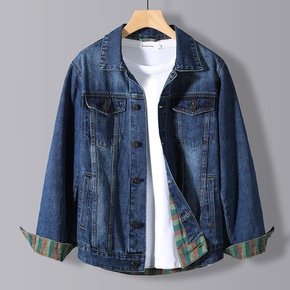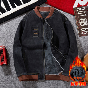 跨境亚马逊男士冬季中长款牛仔夹克加绒保暖外套休闲大...
