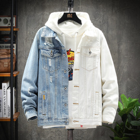 2020新品男士修身牛仔夹克欧美风阴阳2色牛仔外套...