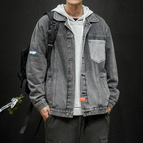 黑灰色牛仔外套男宽松韩版潮流百搭衣服2021新款褂...