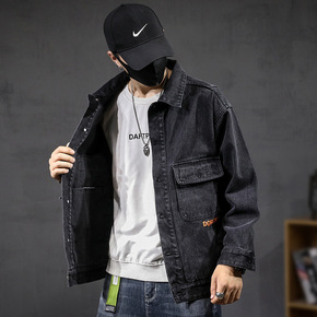 外贸春秋黑色牛仔夹克男士百搭时尚外套韩版日系复古潮...