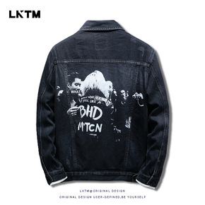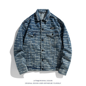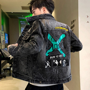 2022春秋新款男士牛仔外套韩版潮流帅气宽松印花夹...