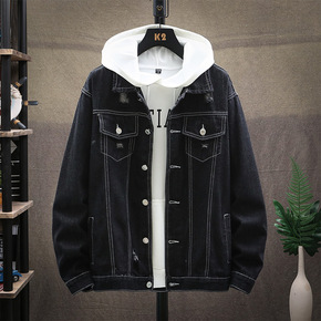 牛仔外套男士秋冬季韩版潮流宽松潮牌工装夹克2021...