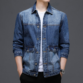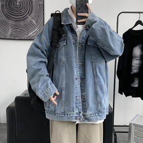 牛仔外套男2021春秋季新款休闲百搭男士翻领宽松大...