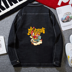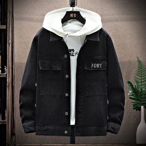 2021男装春款牛仔夹克时尚英文刺绣牛仔夹克外套潮...