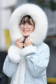 202新款复古大毛领牛仔棉衣外套女韩版服加厚棉衣休...