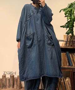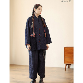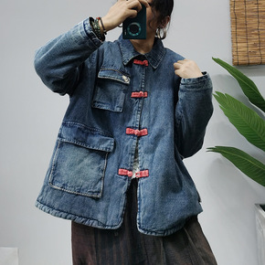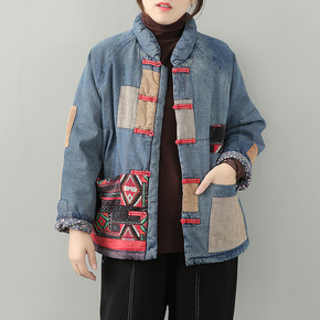 【绿素棉】冬季宽松加厚女新款民族风夹棉贴布宽松牛仔...