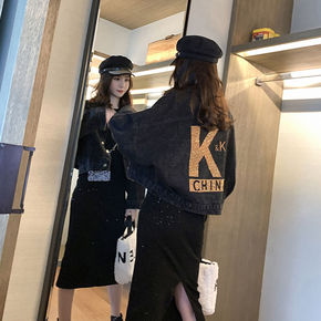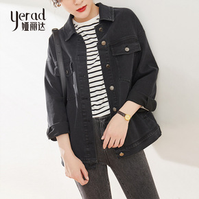 现货代发2021冬季新款韩版宽松休闲时尚翻领牛仔外...