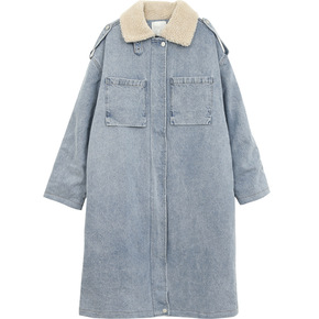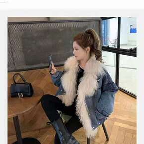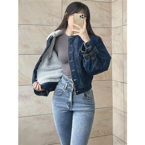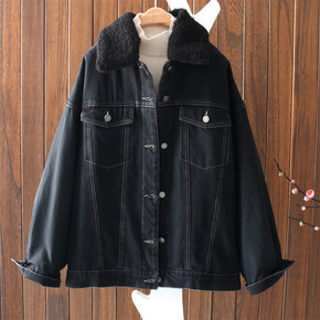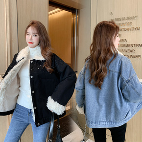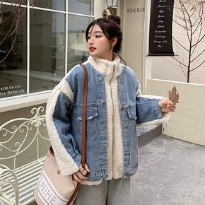 秋冬复古加绒加厚羊羔毛牛仔外套女宽松韩版 一件代发...