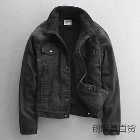 美式复古加绒加厚牛仔外套男翻领羊羔毛棉衣冬季修身棉...