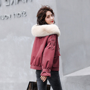 2021冬季短款亮片毛领牛仔宽松韩版棉衣牛仔外套...