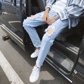 牛仔裤男春秋款韩版修身男款ins潮牌夏季薄款男生休...