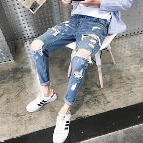 夏季新款破洞牛仔短裤男潮牌ins薄款五分裤男士个性...