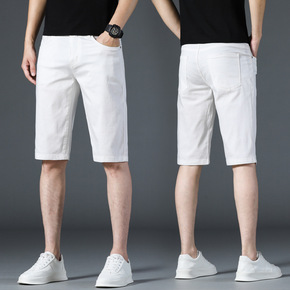 浅色绣花破洞牛仔短裤男修身弹力男士五分裤潮牌中裤马...