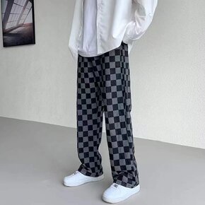 2021秋冬新款格子牛仔裤男ins街头宽松嘻哈阔腿...