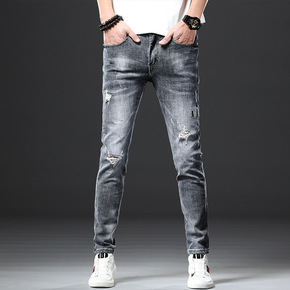 2021牛仔裤男潮牌春秋新款修身小脚韩版潮流休闲九...