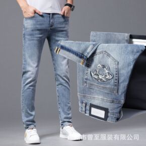 2022欧洲站潮牌小脚牛仔裤男修身弹力刺绣夏季薄款...