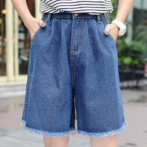 杨幂明星同款牛仔裤女夏高腰破洞显瘦阔腿裤子宽松毛边...