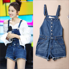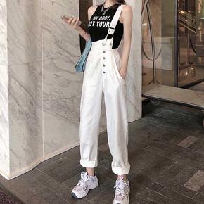 牛仔背带裤女2021新款韩版高腰宽松裤子潮ins网...