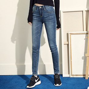 Hoo磨破牛仔裤修身铅笔裤韩版通勤弹力长裤杭州女装...