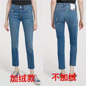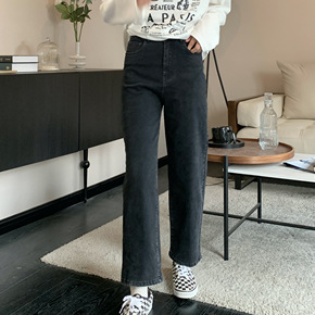 仓古木抓绒水洗牛仔裤女21秋冬韩版宽松显瘦加厚碳灰...