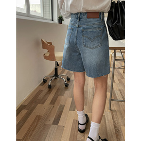 破洞抓纹灰色高腰牛仔短裤女网红同款2021年夏季新...
