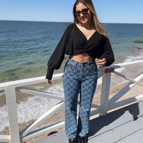 S390177 跨境专供欧美女士牛仔裤亚马逊高腰磨...