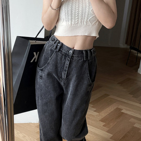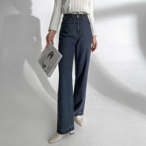素予 秋季2021新品经典色复古牛仔裤女韩版宽松侧...