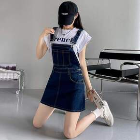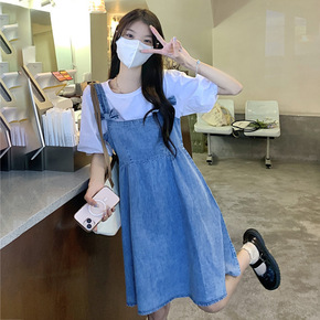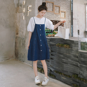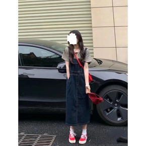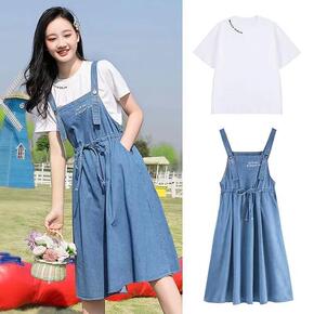 连衣裙牛仔背带裙女2022春夏季新款学生时尚百搭减...