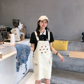 2021夏季新款女装卡通刺绣休闲宽松小熊牛仔背带裙...