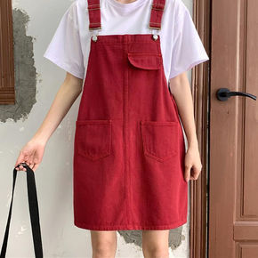 ins超火背带裙女春夏韩版慵懒风学生吊带牛仔短裙宽...