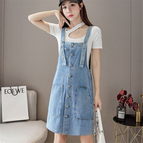 S-5XL 前排扣小个子牛仔背带裙女2022夏季新...