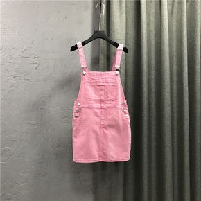 韩版牛仔背带短裙女夏装减龄显瘦小个子可盐可甜吊带粉...