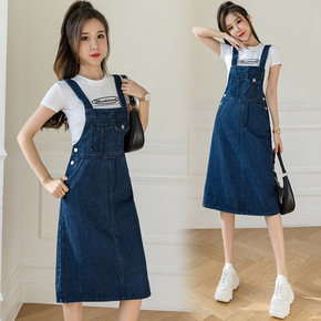 实拍2022夏季新款休闲百搭牛仔背带裙中长款显瘦连...