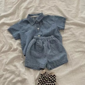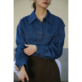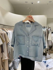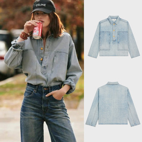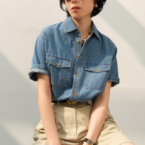 网红 2022小众复古夏季Tomboy牛仔衬衫短袖...