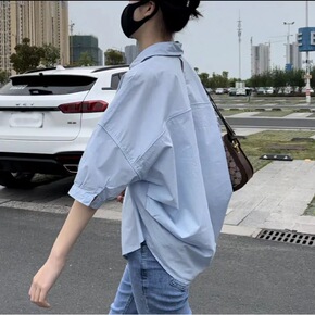 329#清凉柔软蝙蝠袖短袖衬衫 2022夏款宽松大...