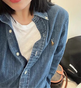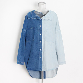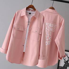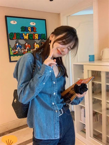 印花牛仔衬衫女长袖春秋新款中长款百搭宽松韩范减龄衬...