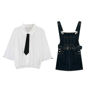 刺绣衬衫牛仔裙两件套女2022春装新款女装时髦绣花...