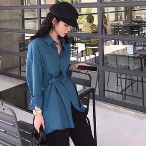 2021新款秋装设计感不规则显瘦开叉心机法式衬衫女...