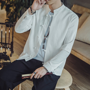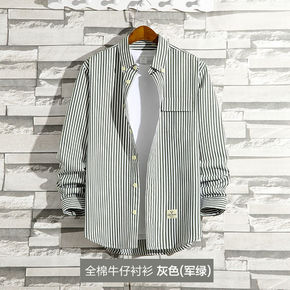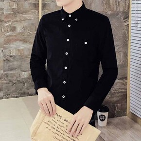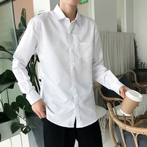 DS男装|春秋美式潮男外穿衬衫男长袖韩版百搭衬衣纯...