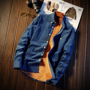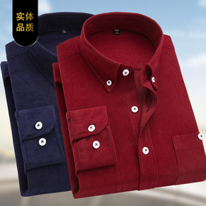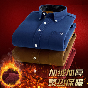 秋冬季加厚男士保暖衬衫 男长袖灯芯绒加绒衬衣韩版休...